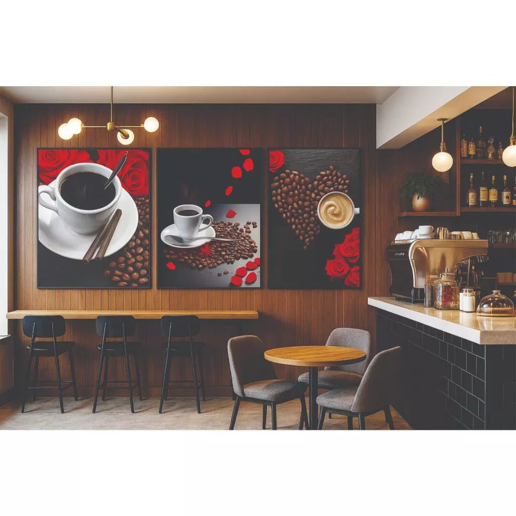 Quadro Decorativo Kit Cantinho do Café – 3 Telas para Cozinha, Cafeteria ou Lanchonete 60x40